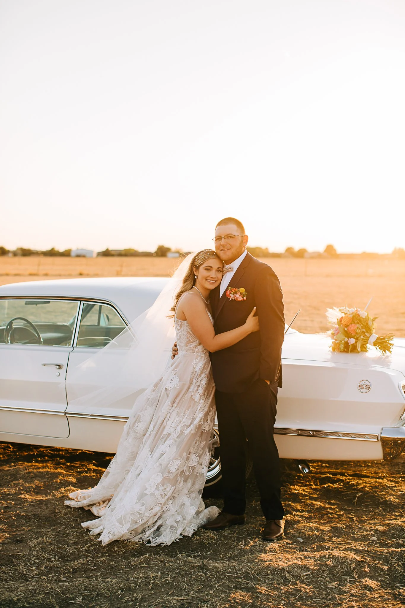 As a photographer, I must say that my favorite part of the day was their sunset portraits that we took with Hunter’s dad’s vintage Chevy Impala. I was positively giddy and I think it showed! Never skip sunset portraits, people! Especially when there is a getaway car involved.